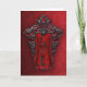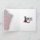 Valentinkort med det blod"kärlek" banret på röd damast. Insidan av detta kort dekoreras för.