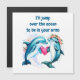Valentinskort med delfin med nygifta par som älskar med frasen Jag hoppar över havet för att vara i dina armar
