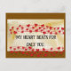 Uttryck kärlek på ett uppriktigt sätt med det här charmerande Alla hjärtans vykort som innehåller den romantiska frasen "Mina hjärtslag för dig". Perfekt för att skicka ljuva känslor till din speciella någon, kombinerar det här vykortet enkelhet och känslor för att ge ett varaktigt intryck. Det här vykortet är ett trevligt sätt att fira kärlek, i närheten av eller långt borta, och det är utskrivet på en högkvalitativ kardstock med en fantastisk utformning. Baksidan ger gott om utrymme för ett personligt budskap, skapar det vara en unik och tankeväckande keepé för Alla hjärtans dag eller något romantiskt tillfälle.