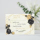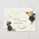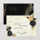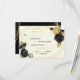 Brist på botaniskt anpassade med Elegant svart och guld blommor med OSA kort av måltider med viss löv på ett geometriskt ram mot guld och vit marmorbakgrund. glitter och foliedetaljer simuleras.