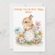 Glad påsk! Det här snygga vattenfärgshälsningskortet har en charmerande kanin i en halvpastellskugga med mjuk färg, perfekt för att fira årstiden för förnyelse och nystart. Kaninen är omgiven av blommor och grönska, vilket gör att designen får en aning av vår. De ömtåliga penseldragen och de milda nyheterna om vattenfärgen ge är en känsla av stollig och lugn, och uppmanar mottagaren att ta ett ögonblick för att uppskatta skönheten i omvärlden. Kaninens beundransvärda uttryck är att ge ett leende till någons ansikte, skapar detta kort som perfekten för att skicka varmt önskemål och hjärtligt hälsning till vänner och nära. Vare sig du firar Påsk med familj eller vänner, eller bara njuter av vår ankomst, är det här vattenfärgshälsningskortet ett vackert sätt att säsongens glädje och med dem du bryr dig mest om. Så låt denna vackra kanin och dess blomstrande omgivning inspirera er att sprida kärlek, hopp och lycka i Påsk!