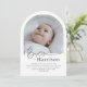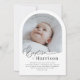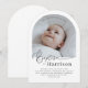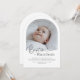 En modern, minimalistisk dopinbjudan med ett välvt foto och ordet 'Dop' i en font med kalligrafisk stil. Observera att du inte kan ändra ordet 'Dop', men du kan redigera all annan text i denna design. Du kan ändra färgen eller ta bort den och ersätta den med en ny textruta om du föredrar.