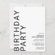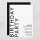 Modern och elegant födelsedagsfest inbjudan med ett könsneutralt svart och vitt färg-system för alla kostym, när som helst.