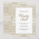 Modern och sofistikerad inbjudan med en vit och guld geometrisk mönster-perfekt för personliga händelser och professioneller.