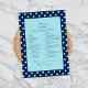 Njut av att spela det här What's On Your Mobil? babyduschspel på en marin blå bakgrund med vitt polka dots. Mallar för framsidan, med en baby-bog i marinblått med tealbakgrund. Matchar Charming Navy Blue and Teal-samlingen.