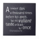 Den tidlösa visdomen hos William Shakespeare's Julius Caesar kommer levande i detta kraftfulla citat: "En fegis dör tusen gånger före sin död, men den tappra smaken av död men gång. Jag tycker att det är mycket märkligt att manar fruktar, eftersom man ser att döden, ett nödvändigt slut, kommer att vara kom när det kommer att vara kom." Orden av mod har inspirerat oräkneliga soldater, lag och äventyrare att ta djärva steg framåt. De påminner oss om att seger inte kan uppnås utan mod och att det bara leder till tusen små nederlag att leva i rädsla. Detta budskap går utöver sitt ursprungliga sammanhang och upprepar Jesus lärdomar: "Den som kärlek förlorar livet och den som hatar sitt liv i världen kommer att behålla det för evigt liv." Verkligt modiga elak som sätter värde på vad som är höger över personlig bekvämlighet och finner styrkan att agera osjälviskt och djärvt i ansikte av rädsla. Oavsett om det är som inspiration för dig själv eller uppmuntran för någon du bryr dig om, låt detta citat vara som en påminnelse om att leva modigt, välj mod framför rädsla och ta till sig den underbarare belöning som komen får av att göra vad som är höger.