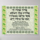 Här är "al netilat yadayim" - som betyder "angående tvättat eller uppkomsten av händer" och som sägs första sak på morgonen, innan man äter bröd och andra specifika händelser. Den här har ett tema för grönt och gult, med löv och massor av stjärnor från David eller "Magen David" motiv till "hidur l'mitzvah", dvs. "beautify mitzvah".