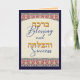 Skicka ett meddelande om välsignelse och grattisar till en pub mitzvah. Kortet har elegantens fuktiga motiv och stiliserade engelska och hebreiska bokstäver.