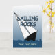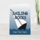 En grafik som illustrerar en leanssegelbåt med texten Sailing Sten på ett hälsningskort för anpassningsbar. Kortet har textmallar för din anpassning. Originalteckningar: Copyright Charmaine Paulson