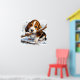 Valpen för att njuta av snöfallet med en pipa i snö. Med en hjärtslitande vinterscen komplett med snöflingor och ett lekfullt uttryck som fångar glädje och värme.