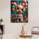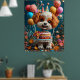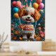 En söt hund med blomman krona har en levande födelsedagsfest med färgstarka kakor, ballonger och glada dekorationer, som framkallar glädje och firande i en festlig atmosfär.