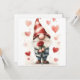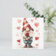 Denna förtjusande illustration visar en charmerande gnom som håller ett enda röd ros, omgiven av en fjäder av hjärtan. Perfekt för Alla hjärtans dag, den här viskfulla bilden kommer säkert att ge ansikte ett leende.