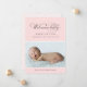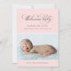 Meddela ankomsten av din babyflicka med detta eleganta "Välkommen Baby" födelsedeklarationskort med foto. Flödande kalligrafiskrift i varmt grått sitter ovanför ett rosa band som visar din nyföddas namn, födelsedatum, vikt och längd. Ditt favoritfoto visas nedan med ett meddelande från de stolta föräldrarna. Baksidan har ett koordinerande blekt rosa damaskmönster. All text och bakgrundsfärger är helt anpassningsbara.