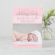 Meddela ankomsten av din babyflicka med detta eleganta "Välkommen Baby"-födelsekort. Flödande kalligrafiskrift i varmt grått metalliskt sitter ovanför en banderoll som visar din nyföddas namn, födelsedatum, vikt och längd. En mjuk rosa bakgrund ramar in ditt favoritfoto för en tidlös, feminin look. Bakgrundsfärgen och all text är helt anpassningsbar för att samordna med din bild.
