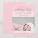 Välkommen Babyflicka Rosa Skript Foto Födelse Meddelande