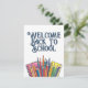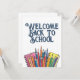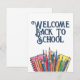 Den fina "Welcome Back to school"-designen med färgstarka pennor och anteckningsböcker - perfekt för hälsning, klassrumsdekaler, flygblad, poster eller social-medieinlägg i utbildningsmiljöer.