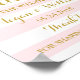 Välkomna till Bröllop-skylten poster med eget namn och datum mot bakgrund av rosa och vit rand mönster med guld glitter-effektkonfirmering. Observera att guld endast är fotografiskt.