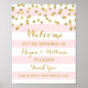 Välkommen Bröllop-signalen Rosa Rand Guld confetti Poster