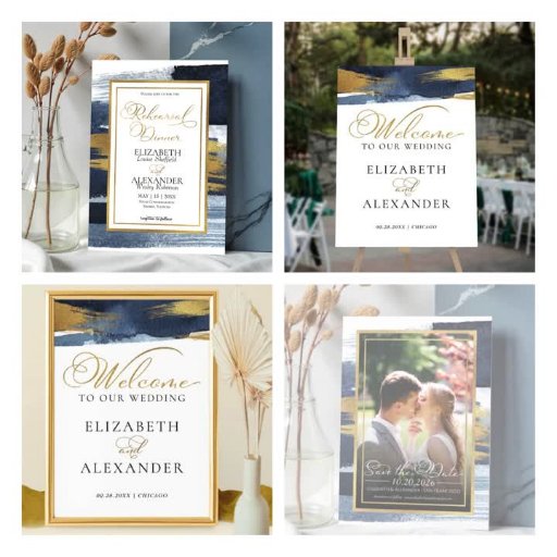 Dö in i vår Abstrakt Bröllop Collection och låt bröllop skina. Samlingen är en unik blandning av marinblå och gylda accenter parade perfekt med en modern vattenfärgsskevning. Med den här pinterest board får du en chans att utforska utformandet och inspireras till din speciella dag.