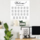 Gör en påstående på din bröllopsmottagning med det här krävande 23-bord sätesschemat. Den moderna blommigten har en slående elfenben, vit eller gräddvit färgad ro som vilar vågrätt och som elegant reflekterar i en sund bassäng i vatten. Diagrammet kan rymma upp till 230 gäster med 10 platser per bord. Titeln är skriven i elegantens manusjografi, där gästerna välkomnas och vägleds till det bord som har utsetts. Grund-delen av diagrammet är avsedd för namnen av paret och deras bröllop-datum, vilket gör att du får en personlig till din dekoration. Det här sätesschemat utstrålar en romantisk, graciös, klassande och glamorös vibe, skapar det perfekten för att höja stil och elegansen i din bröllopsmottagning samtidigt som man förenklar sittplatserna för dina gäster.