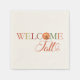 Knapkin som säger "WELCOME Fall" med en pumpa ställe i "O" på välkomsten.