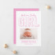 Modern födelseanmälan i rosa. Meddelande. Finns i många färg.