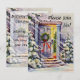 mysiga inbjudningar till din högtid eller julfest. Vacker vinterscen med varmt ljus som kommer från insidan av främre dörren, med krans och snöiga träd utanför. Anpassa online med dina evenemangsuppgifter.