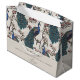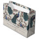 I elegant välkomnas ivoriansk Blommigt Peacocks Large Gift Bag med handdragna blå och tealblåsor som trycks på Magnolia träd grenar i blomning i Chinoiserie stil mönster. Allt mot en elegant elfenbensbakgrund med blommigt silhouette-information. Anpassa till din egen rubrik (Välkomsthälsning, Grattis på födelsedagen, Lycklig-årsdag, Lycklig Mors dag etc.), ett personligt budskap och ditt namn och datum.