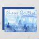 Julhälsningskort med blå akvarell tallar och texten "Välkommen jul". Anpassa med ditt eget personliga meddelande på baksidan tillsammans med ditt familjenamn eller individuella namn.