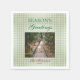 Välkommen julen! Klassisk grön gingham med mörkgrön och vinröd typografi. Fotomall via Pixabay licensierad under CC0 och måste ersättas med ditt eget foto