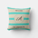En beige och turkotisk stripe-dekorerad dekorkudde anger du familjens initialvärde och namn på framsidan och baksidan med personifieringsknappen eller personifieringsknappen. Övriga tillgängliga stilar.