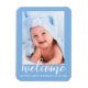 Välkomna Nyfödd bebis-meddelande - blå magnet