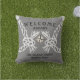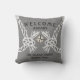 Välkommen ombord på dekorativ kudde utomhus, ljusa grått-linor på en grått färg-bakgrund med svart text. Du kan skriva texten från namn till kostym med båten med hjälp av funktionen "anpassa den här mallen".