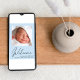 Ett enkelt och sött pastellblått pojke-födelsemeddelande. Framsidan innehåller ditt nyfödda foto, fullt, namn, ankomstdatum och födelsestatus och "Välkommen" i ett skript för snyggt. På motsatt sida lägger du till tre ytterligare foton och överordnat och syskon namn och ett tack, besök eller annat meddelande.