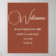 Terrakotta Bröllops Välkomstaffisch med vacker vit typsnitt på en brun eller bränd orange bakgrund. Kolla in fler produkter med denna design i kollektionen nedan.