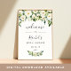 Välkomna gäster till din möhippa med vår Alabaster-Blommigt poster, med lush vattencolor botanical grey and white blommor, med "Välkommen till [namn] möhippa" och händelsemedagen i en chic blandning av moderna block- och handskrivna kalligraftypsnitt.