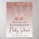 Glam personlig välkomnar poster för din babydusch med ro guld faux glitter som droppar ner en ombre ro guld-bakgrund, en illustration av baby fötter i ro guld glitter och "Baby Shower" i ett snyggt-skript. Anpassa med ditt namn och duschdatum.