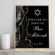 Chic svart och guld agate dekorerar den moderna anpassningsbarnas sida, Pub Mitzvah party välkommen poster. Din sons namn är skriven i ett vackert högtidligt skript under David stjärna. Perfekt för en chic, snyggt judisk familj som firar att deras pojke kallades till Torah.