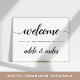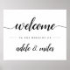 Välkomna gäster till bröllop med vår enkla och elegant bröllop välkomna poster. 16x10-tecknet är välkommet till bröllop i [namn] i ett skarpt svart kalligrafiskt skript och en klassisk blockering.