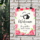 Möhippans välkomstskylt har ett dam silhouette som gränsar till rosa vattenfärgen ro. Det finns en version av Long hair dam tillgänglig och MATCHING-objekt i vår samling.