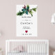 Välkommen dina bröllopsfestgäster med en festlig vinterbotanisk design. Julgran och bär är nästlade i en mängd olika tallgrenar. Ett rött hjärta skiljer texten åt för en romantisk touch.