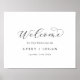 Bröllop välkomna poster i eleganten är perfekt för ett enkelt bröllop. Den minimalistiska svartvita designen har romantisk typografi i finare med modernt glam stil. Anpassade i alla färg. Behålla designen minimal och klassad som den är, eller anpassa den genom att lägga till egna bilder och teckningar. Anpassa poster till namn på bruden och trimmen och datumet för bröllop.
