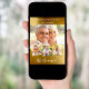 Skapa din egen unika fotokollage. Använda fyra, fyra av ditt favoritfoto. Anpassa och lägg till namn och ålder. En faux guld tittar bakgrund, faux guld ramar och vit text.