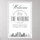 Välkomna de bra folk som reste från nära och långt till kom till ceremonin i bröllop med detta vackra poster! Det är säkert att de leker på ansikte när de går in i kyrkan, i valurnorna eller på platserna för er ceremoni, och som en uppskattning av deras närvaro. Det moderna och roligt dekretet-stil-bröllop-välkommet poster är skräddarsytt specifikt för ett bröllop som tar ställe i den vackra staden Houston i Texas. Det är ett stort välkomnande hälsning mot toppen och en stiliserad illustration av stadens unika skyltning mot grund. Mellan den här platsen finns information om din bröllopsdag, inklusive datum, stad och namn för det vackra gifta paret.
