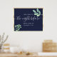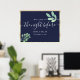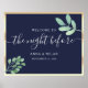 Elegant, modern, botanisk, enkel guldbord och marinblå Kvällen före repetitionsmiddagen välkomstkort med handskriven kalligrafiskrift.