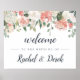 Välkomna gäster till bröllop med vår elegant blommigt Midsommar-poster, med en gräns av pastellblommor och löv, med "välkommen till vår lyckliga efterdyning", din namn och bröllop dejtar i en chic blandning av traditionella serif- och calligraftypsnitt. Lodräts orientering finns också i vår Midsommar-samling.