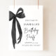 Den moderna Eleganten Black Bow Coquette Birthday Välkomsthälsning är perfektens sätt att välkomna gästerna vid firande med stil och sofistikering. Den här poster har en slimmad, svart böjningsdesign och en aning coquette elegans och anger tonen för en chic och en minnesvärd födelsedagsfest. Perfekt för milstolpar som 30:e, 40:e eller 50:e födelsedagar är det helt anpassade att passa ditt tema och lägga till en polerad, personlig beröring till din speciella dag. 🎀 ✨ 🎉