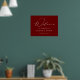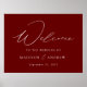 Välkomstskylt från elegant bröllop med "Välkommen" i ett vitt, modernt kalligrafiskript med en burgundisk bakgrund (eller färg efter eget val). Anpassa bröllop poster genom att lägga till datum för namn och bröllop. Det burgundiska välkomsttecknet i bröllop är designat för att samordna med vår moderna elegance bröllop-samling och finns i andra färg.