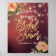 Möhippans välkomstskylt Poster mallar - Faux guldfärgskript, Elegant Watercolor Blommigt Peach Vit ros och String Ljus på Burgundy Red Background. En Perfekt för din stora dag! Alla textstorlekar i Stil, Färg kan anpassas efter dina behov.