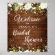 Välkomna gäster till bröllop med Wood & Vit ros Blommigt Greenery Möhippa Välkomna Poster, med lush-vattenfärg botaniskt grönt och vita blommor, med "Välkomna till vår lyckliga dag efter" ditt namn och bröllop daterar sig i en chic blandning av moderna block- och handskrivna kalligraftypsnitt.